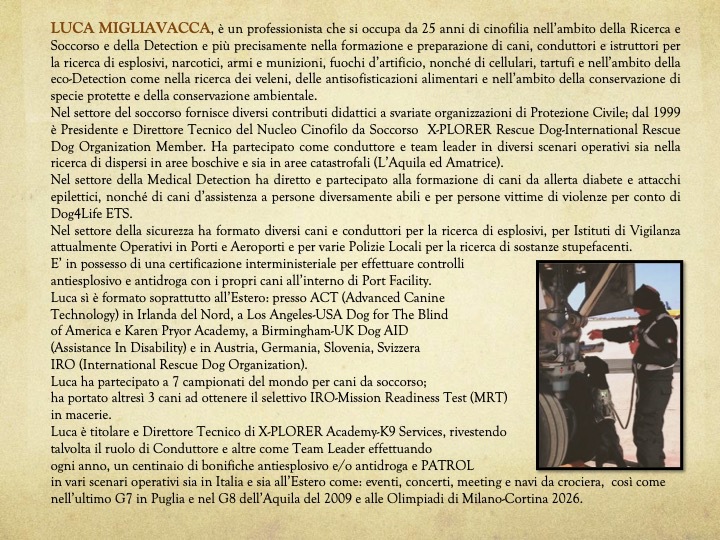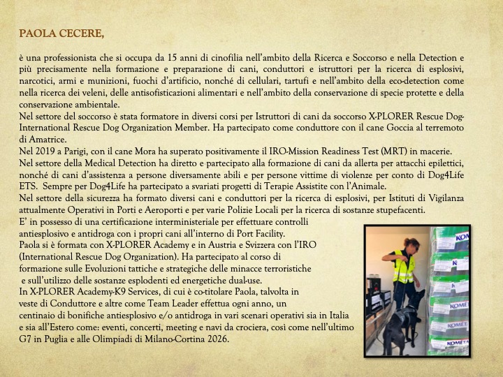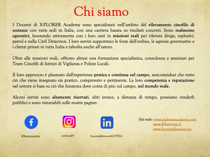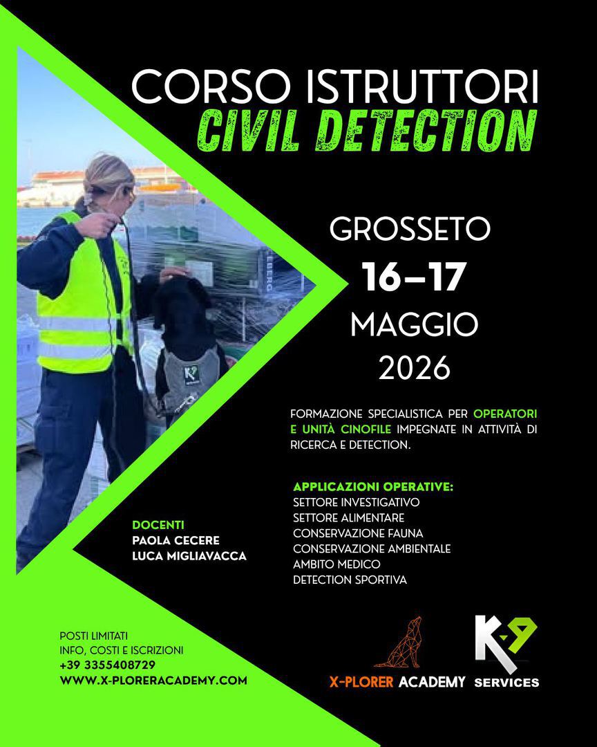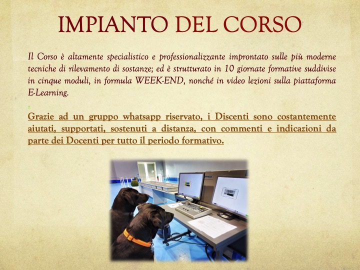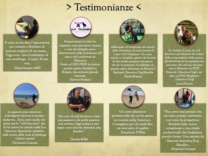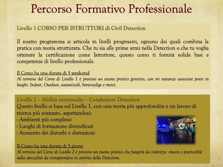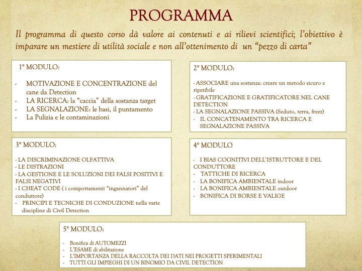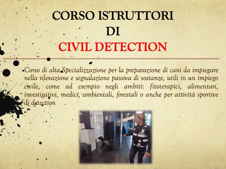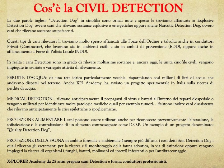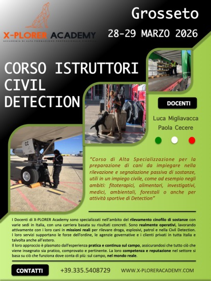 per la preparazione di cani da impiegare nella rilevazione e segnalazione passiva di sostanze, utili in un impiego civile, come ad esempio negli ambiti: fitoterapici, alimentari, investigativi, medici, ambientali, forestali o anche per attività sportive di detection
